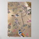 Affiche Jardin d'or métallique Chinoiserie avec oiseaux ch