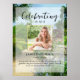 Laffiche de souvenir parfaite pour accueillir la famille et les amis qui entrent dans la célébration de la vie de votre proche. Le design présente une photo personnelle carrée, 5 lignes de texte personnalisé et une photo de fond d'un beau jardin. Vous pouvez facilement la remplacer par votre propre photo de fond. Classique mais unique - ce modèle est si facile à personnaliser et fera également un excellent souvenir souvenir.