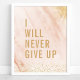 Je N'Abandonnerai Jamais L'Affiche De Citation D'Or En Marbre Rose. Tendance de conception personnalisée de marbre typographie motivationnelle inspirationnelle conception de devis. Ce design de patron de fille à la taille de fille a un arrière - plan en marbre rose avec des accents d'or. Motivez-vous à vous agiter et à travailler dur!