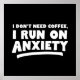 Je n'ai pas besoin de café, je cours sur l'anxiété drôle Citation noir & blanc disant Typographie *Customisez-le! Choisissez-vous la couleur de l'Arrière - plan imprimé!