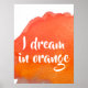 Citation inspirante Je rêve en orange pour les amoureux de la couleur rose. Un design d'aquarelle boho mignon avec citation d'art couleur orange.
