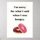 Je suis désolé pour ce que j'ai dit quand j'avais faim