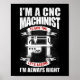 Affiche Je suis un machiniste CNC J'ai toujours raison
