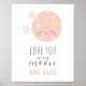 Affiche Je t'aime jusqu'à la lune et retour. Bébé fille. N