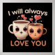 Affiche Je t'aimerai toujours, mignon couple tasses à thé