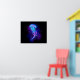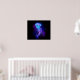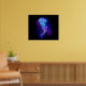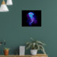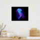 Grande méduse bleue, artistiquement dessinée, brillante, brillante, avec de longues tentacules sur arrière - plan noir avec bioluminescence violette. Méduse brillante.
