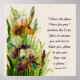 Un poster de citation inspirant représente une belle aquarelle de fleurs Iris. Il présente la Bible Verse Jérémie 29:11, Je connais les plans que j'ai pour vous, déclare le Seigneur, prévoit de vous prospérer et de ne pas vous nuire, prévoit de vous donner de l'espoir et un avenir.