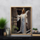 Dans la douce lueur d'un nouveau jour, une figure incarnant Jésus se dresse sur une porte patinée en bois, encastrée dans un mur en pierre. Son doux coup attend une réponse, symbolisant une invitation à l'éveil spirituel. La scène tranquille est baignée par la lumière chaude du lever du soleil, évoquant l'espoir et le renouveau qu'apporte une nouvelle journée. Le cadre serein saisit un moment profond de réflexion alors que Jésus attend patiemment à l'ancienne porte. Sa présence rayonne sur la paix, offrant un message intemporel de foi et de connexion spirituelle. Le bois et la pierre patinés créent un décor rustique, mettant l'accent sur la nature éternelle de Son appel. Cette oeuvre réfléchie encourage la contemplation et la dévotion. Présentée dans une maison, une église ou un espace sacré, elle sert de puissant rappel de l’amour persistant du Christ et de l’invitation douce à Lui ouvrir le coeur.