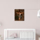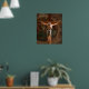 Cette affiche a une croix boisée avec Jésus suspendu à elle et un fond brun