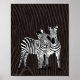 Un tableau numérique de deux zèbres de manière ludique, avec un arrière - plan rayé marron.