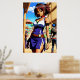 Affiche Jeune Africaine Lady robe bleue blanche | Art AI