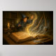 Un jeune apprenti évoque des symboles brillants au-dessus d'un livre ancien dans un cadre mystique. Illustration Imaginaire avec lumière magique, runes flottantes et étincelles. Idéal pour les contes de fées et les thèmes de contes.