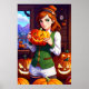 Affiche Jeune femme cheveux longs tenant un citrouille | A