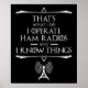 C'est ce que je fais - je gère des radios de jambon et je connais les choses. L'accessoire de radio amateur amusant pour jambon serait un grand cadeau pour un opérateur de radio amateur de jambon à porter dans leur cabane de jambon. Aimez-vous utiliser des radios de courte durée et de jambon comme passe-temps? Avez-vous une antenne sur votre toit ou votre jardin ? Connais-tu toutes les meilleures fréquences ? Alors ce design est pour vous ! A un graphique d'une antenne de radiodiffusion.