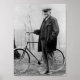 Cette photo vintage montre le magnat américain John D. Rockefeller debout à côté d'un vélo en 1913.