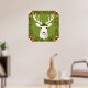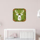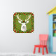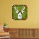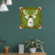 Illustration détaillée d'un cerf aux bois de bois dans un paysage serein et enneigé avec verdure et champignons.