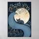 Affiche Joli chat dormant sous la Lune et les Étoiles.
