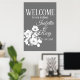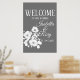 Affiche Joli gris et blanc Mariage Floral Bienvenue