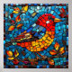 mignonoiseau en mosaïqueoiseaufleursnaturemotifart folkloriquerougevintagefloral