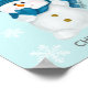 Joli petit bonhomme de neige avec un bonnet et une écharpe bleus, de beaux flocons de neige et une couleur bleu clair ornent le fond. Oh bébé, il fait froid dehors affiche. Vous pouvez personnaliser cette affiche adorable avec le nom de votre enfant et du texte.