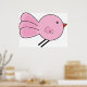 Un mignon petit oiseau rose avec un bec rouge. Ce design semble vraiment efficace sur ces Poster