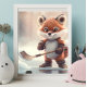 Affiche Joli renard orange jouant au hockey sur glace Art