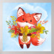 Joli renard rouge avec un bouquet de feuilles d'automne.