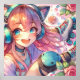 Mignonne fille anime portant des casques avec des oreilles de chat et des patins à rouleaux. Poster de patineuse rose et bleu mignonne pour les filles de gamer ou les amateurs de musique ou ceux qui aiment le thème de la fureur.