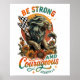 Design paisible et coloré avec une scène automne/automne avec majestueux lion et fleurs d'automne. Le texte inspirant et coloré dit : "Soyez forts et courageux. Joshua 1:9". Ce design est disponible sur une grande variété de produits.