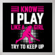 Hockey Jouer comme une fille affiche une joueuse de hockey féminine silhouette et texte I Know I Play Like a Girl Essayez de tenir!