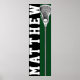 Affiche de crosse personnalisée avec illustration de bâton de crosse sur fond vert. Modifiez le texte pour ajouter le nom du joueur ou personnaliser autrement.