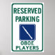 Panneau de stationnement réservé aux oboïstes. Disponible orthographié la voie RÉELLE (hautbois) ou la voie commune (hautbois).