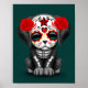 Affiche Jour rouge mignon du chien chiot mort Turquoise