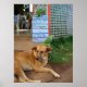 l'un des chiens de l'île de Little Corn Island, une minuscule île des Caraïbes au large du Nicaragua, farniente aux portes d'un restaurant avec ses compagnons de perroquet