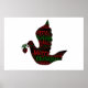 Le contour d'une colombe portant une branche de la paix est rempli de voeux d'un Joyeux Noël en lettres rouges, vertes et oranges, dans de nombreuses langues différentes.