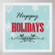 Style vintage Happy Holidays design avec flocons de neige et décoration florale sur arrière - plan bleu