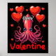 Affiche Joyeux Calmar Saint-Valentin tenant coeur Bylloons