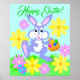 Affiche Joyeux lapin de Pâques mignonne Cartoon Fleurs de