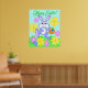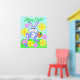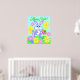Un joyeux lapin de Pâques avec une corbeille d'oeufs colorés, des fleurs de printemps vives, un joyeux ajout à votre décor de Pâques dans les chambres pour enfants, salle de jeux, cuisine, chambre familiale, garderie ou solarium. La couleur de texte "Happy Easter" est réglée sur un vert printanier vif ; les autres couleurs de Pâques sont rose, violet, bleu et jaune. Vous pouvez modifier le message si vous le souhaitez, directement sur la page produit. C'est un design amusant et insouciant, un lapin gai à la chasse pour les oeufs de Pâques, avec un sourire gagnant et de mignons yeux bleus, entouré de fleurs d'imaginaire rose et jaune. Optimiste, optimiste et expressif, ce design impressionnant est dessiné à la main et original, créé pour vous par M Sylvia Chaume, Canada. Pâques chanceuses !