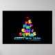 Arbre de Noël et neige composé du texte coloré et décoratif Joyeux Noël Bonne année. Cadeaux de Noël, estampes et t-shirts pour le plaisir et la bonne humeur.