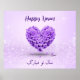 Illustration du Nouvel An persan moderne, tendance et adorable avec un bouquet de coeur d'hyacinthe violet sur un arrière - plan de bokeh de parties scintillant lilas clair.