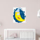 Un joyeux visage de lune jaune portant un casquette bleu et blanc. Ce design semble vraiment efficace sur ces Poster