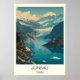 Commemorate Alaska's capital city, Juneau, with this elegant vintage travel design. Featuring a majestic glacier and waterway surrounded by mountains, highlighting the natural wonders near this unique city.