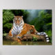 Le tigre de la jungle, confiant, puissant et courageux, repose dans un ruisseau tranquille en attendant la tombée de la nuit quand il traquera sa proie pour accomplir sa journée.