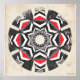 Poster suspendu au mur du kaléidoscope. Motif fractal, rouge, noir, gris, blanc. Vintage regard, sensation de détresse.