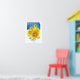 A poster decorated with a western meadowlark bird in a field of bright blooming sunflowers in summer over the state shape in royal blue drawn with pen and ink and painted with watercolor. Inspired by the state bird and state flower of Kansas. Great for college dorm room decor or anyone who loves "The Sunflower State!"