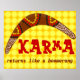 L'énoncé "Karma revient comme un boomerang" avec une image d'un boomerang avec décoration de style aborigène