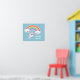 Super mignon narval volant sous un arc-en-ciel avec des nuages heureux. Personnalisez avec votre propre texte.