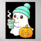Affiche Kawaii Ghost With Pumpkin Coffee Cozy Halloween Au