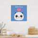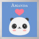 Illustration d'un ours Panda de style Kawaii mignon avec coeur d'amour et nom personnalisable des personnes.